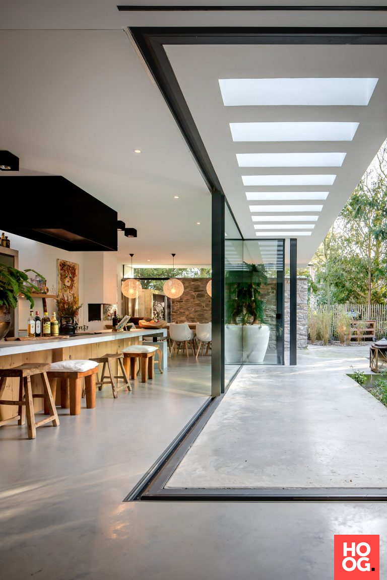 En Californie, l’extérieur compte tout autant que l’intérieur. Dans cette région ensoleillée, il est possible de profiter de la terrasse et de la piscine durant la majeure partie de l’année. C’est donc tout naturellement que le style californien est tourné vers l'extérieur. Les pièces de vie sont toutes orientées vers la terrasse. Aussi, les grandes baies vitrées offrent un point de vue privilégié sur la piscine. Pour faire disparaître les limites entre l'intérieur et l'extérieur, il est possible d’opter pour des baies vitrées à galandage. Une fois ouvertes, elles augmentent la surface de la maison et facilitent la circulation entre le salon et la terrasse.